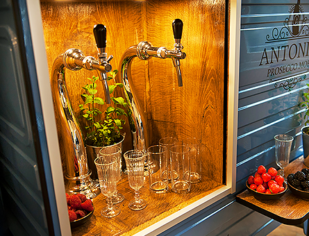 Antonios Prosecco Mobil ist eine Original 3rad Piaggio Ape, welche mit viel Liebe zum Detail in eine mobile Schaumwein-Bar umgebaut wurde. Prickelnder Prosecco frisch gezapft aus dem Fass.